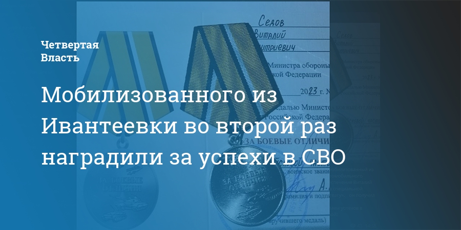 Мобилизованного из Ивантеевки во второй раз наградили за успехи в СВО