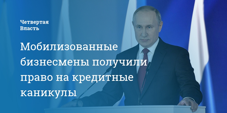 Мобилизованные граждане, владеющие бизнесом, получили право на кредитные каникулы. Закон, направленный на поддержку малого и среднего предпринимательства, подписал президент России Владимир Путин.