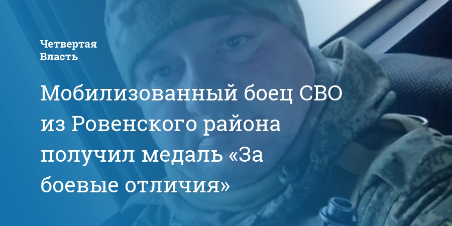 Мобилизованный боец СВО из Ровенского района получил медаль «За боевые отличия»