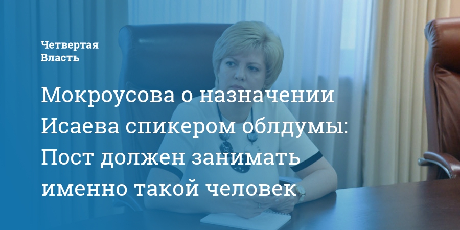 Мокроусова о назначении Исаева спикером облдумы: Пост должен занимать именно такой человек