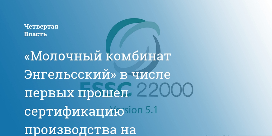 В результате ООО «Молочный комбинат Энгельсский» один из первых в стране, получил сертификат соответствия новой международной системе качества FSSC 22000 v.5.1. в области безопасности пищевых продуктов.