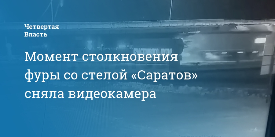 Момент столкновения фуры со стелой «Саратов» сняла видеокамера