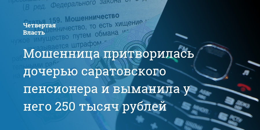 Мошенница притворилась дочерью саратовского пенсионера и выманила у него 250 тысяч рублей