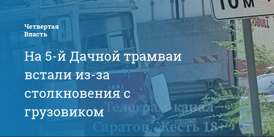 Сегодня, 5 июля, в Ленинском районе Саратова трамвай №3 (6-я Дачная - Мирный переулок) столкнулся с грузовиком. Фотографией с места происшествия очевидцы поделились в соцсетях.