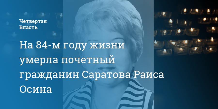 Сегодня, 20 февраля, на 84-м году жизни скончалась Раиса Осина – почетный гражданин Саратова, ветеран службы труда и занятости. Об этом сообщает министерство труда и социальной защиты области.