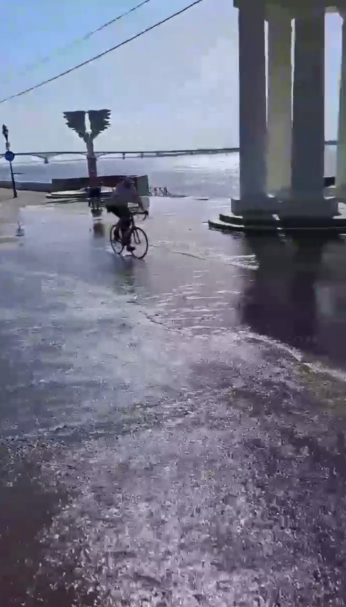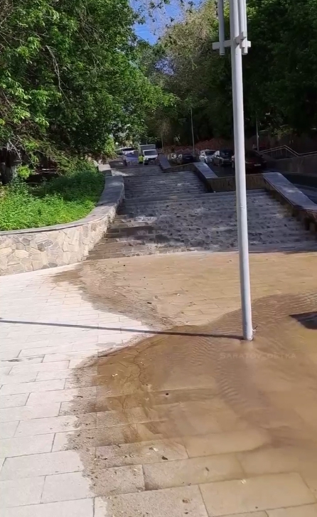 В соцсетях горожане сообщили о «водопаде», который образовался у Ротонды. Мощный поток воды спускался с дороги по ступенькам и доходил до Волги.
