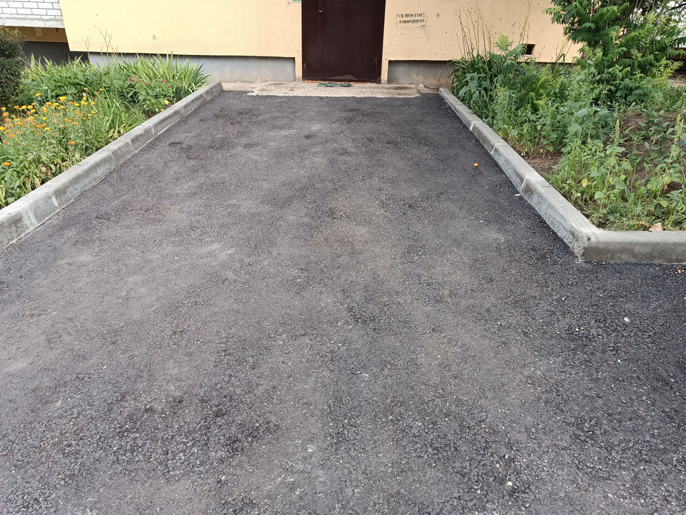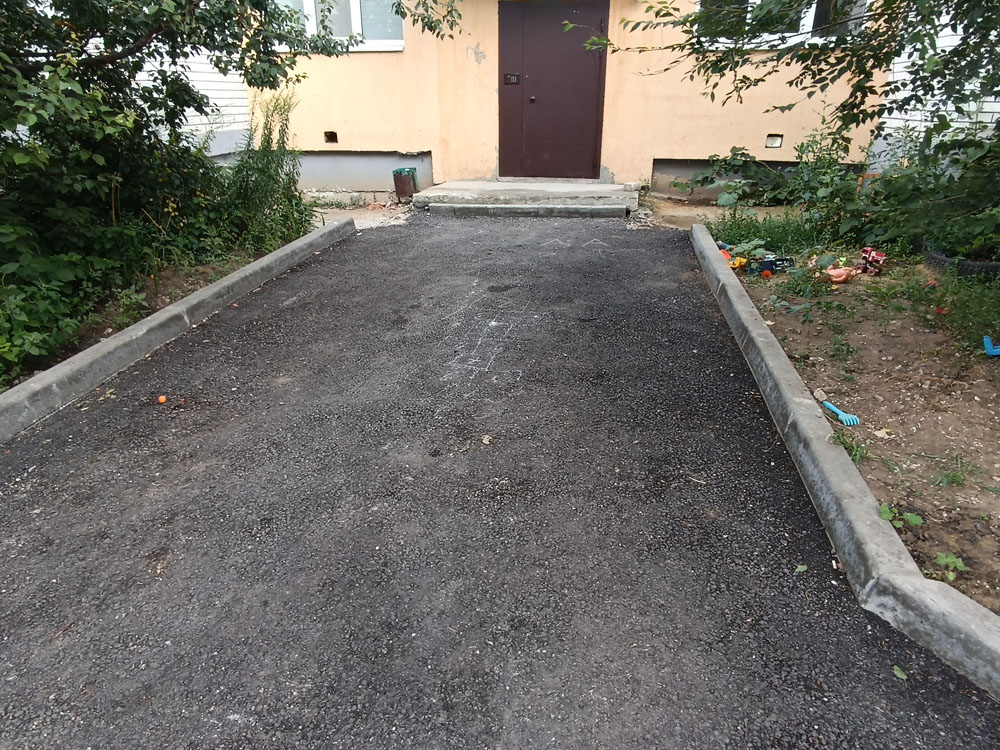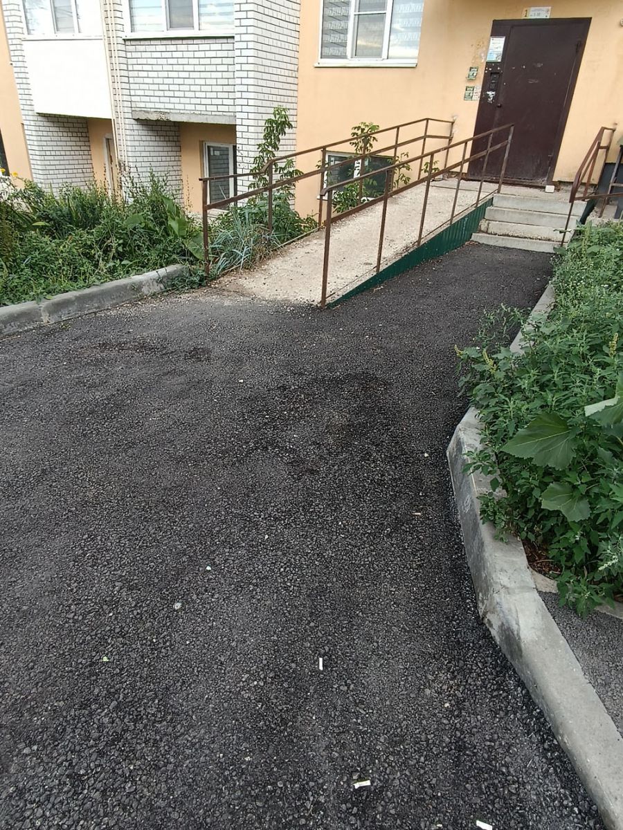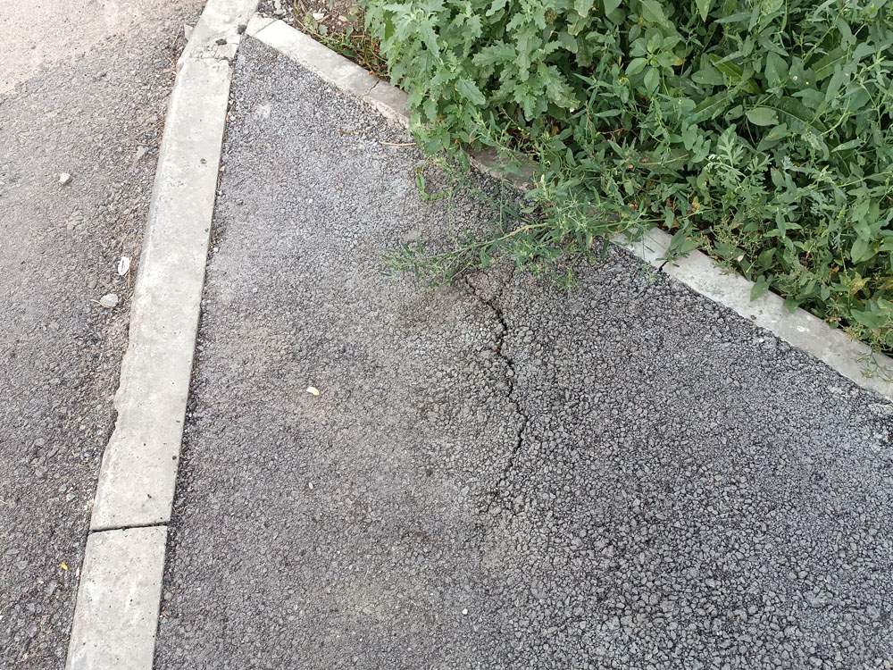 На тротуаре в самом начале двора можно заметить просадку и трещину в асфальте. У каждой входной группы 3-х подъездного многоквартирного дома происходит выкрашивание асфальтобетонного покрытия, что в перспективе приведет к образованию выбоин.