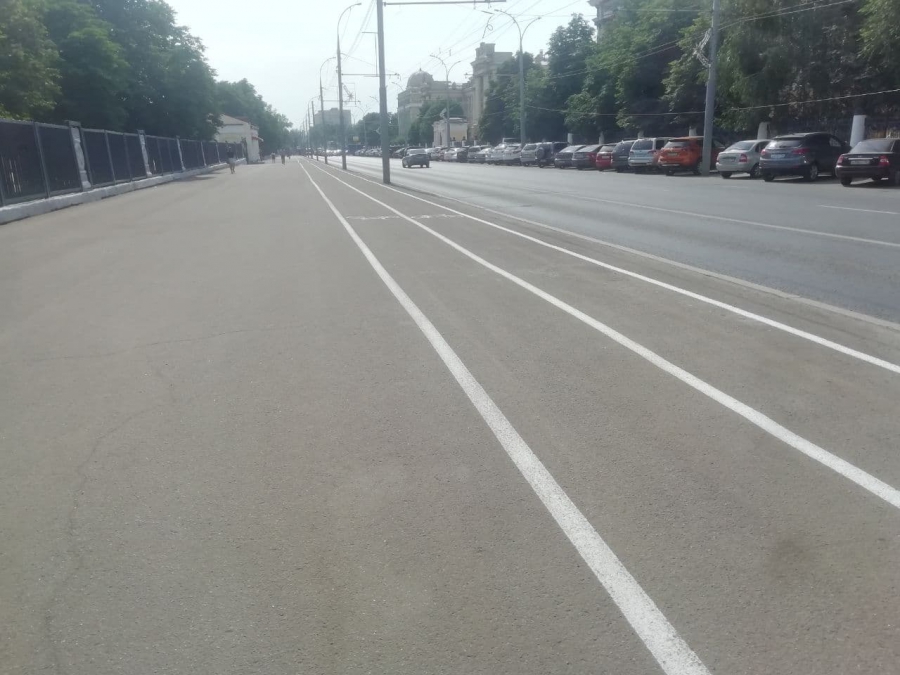 На центральных улицах Саратова начали наносить разметку для велосипедистов