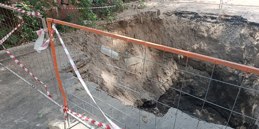 Ко всему прочему, во дворе не соблюдался порядок очередности работ, в результате чего свежеуложенное асфальтобетонное покрытие подверглось вскрытию ресурсоснабжающей организацией. В глубоком котловане валяется новый бортовой камень, который не удосужились бережно демонтировать во время проведения земляных работ.