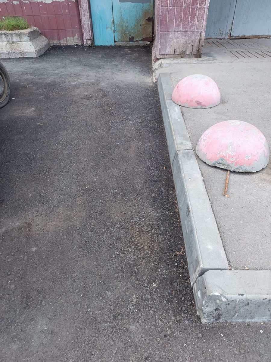 Помимо этого, в кармане у второго подъезда наблюдается небольшой участок с выкрашиванием, а также сколот борт от наезда тяжелой строительной техники.