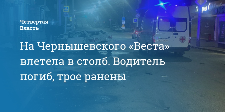 На Чернышевского «Веста» влетела в столб. Водитель погиб, трое ранены