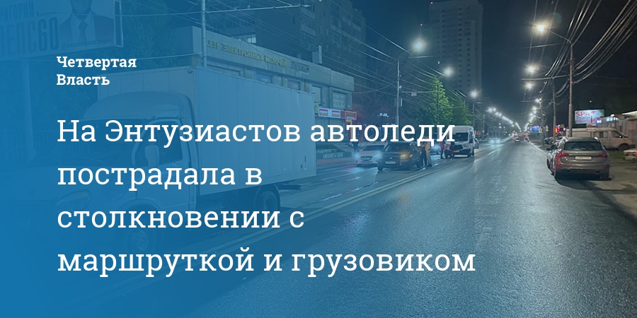По предварительным данным, женщина 1983 года рождения ехала на автомобиле «Форд Фьюжн» по проспекту Энтузиастов. Примерно в 21.00 напротив дома №48А она столкнулась с маршруткой №13 (остановка Пархоменко – стадион «Спартак»), за рулем которой находился водитель 1991 года рождения. После этого легковушка изменила траекторию движения и столкнулась с грузовиком «ГАЗ-3302» под управлением мужчины 1972 года рождения.
