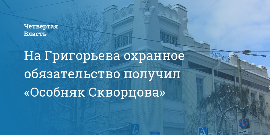 На Григорьева охранное обязательство получил «Особняк Скворцова»