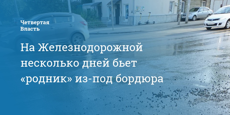 Так, на пересечении улиц Железнодорожной и Соколовой не меньше 4-х дней бьет «родник» из-под бордюра. Из-за этого размывается грунт и асфальт. На фоне этого жители расположенных рядом частных домов жалуются на плохой напор воды.