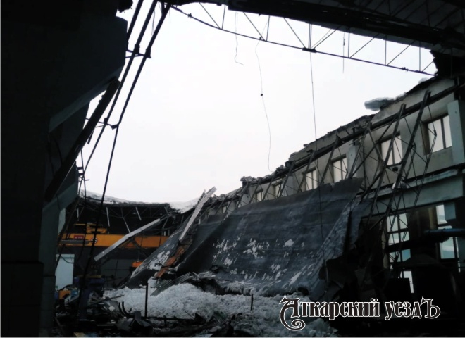 Как стало известно редакции газеты «Аткарский уездЪ», ночью обвалилась крыша в цехе ПЧМ на большой площади. Это находится в бывшем Локомотивном депо, расположенном по улице Чапаева, 98.
