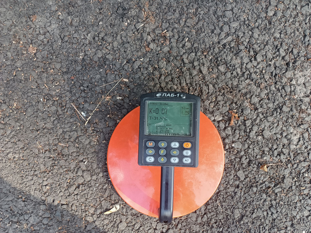 А вот на парковке двора дома №6 сотрудники «Дорожного контроля» обнаружили участок в 2 кв.м, подверженный разрушению. При измерении коэффициента уплотнения плотномером участок показал недостающее до нормативного значение — 0,89.