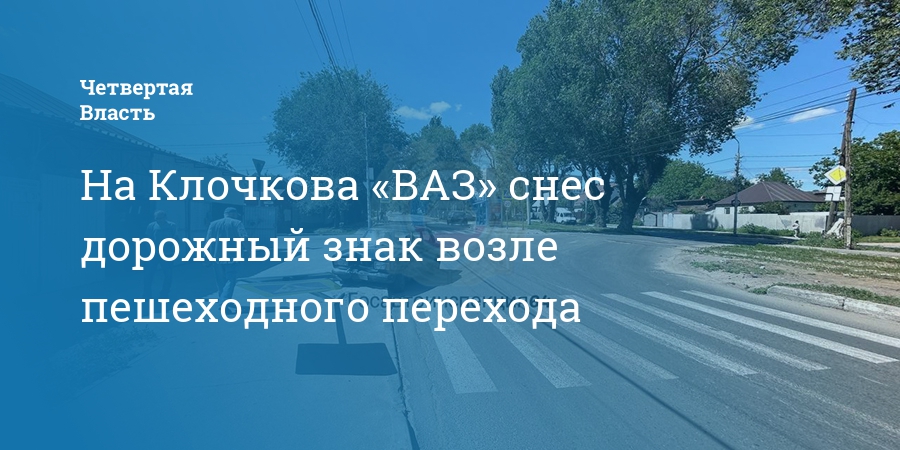 На Клочкова «ВАЗ» снес дорожный знак возле пешеходного перехода