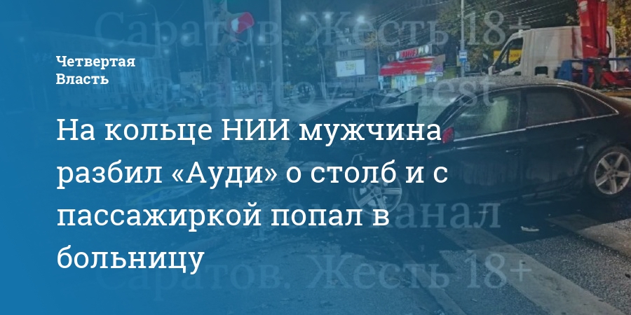 На кольце НИИ мужчина разбил «Ауди» о столб и с пассажиркой попал в больницу