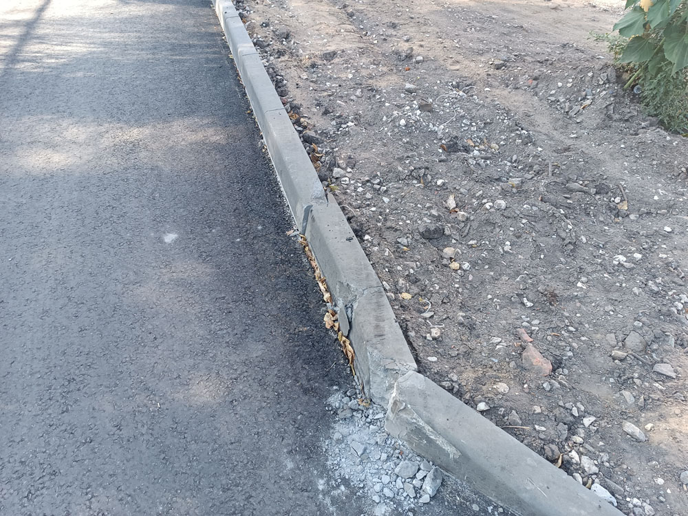 Вероятнее всего, борт пострадал от наезда тяжелой техники и нуждается в замене. Других нареканий к качеству ремонта двора не возникло.