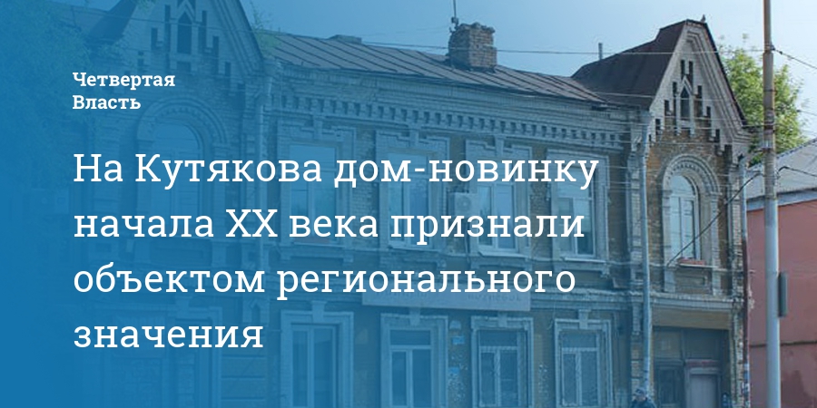 На Кутякова дом-новинку начала XX века признали объектом регионального значения
