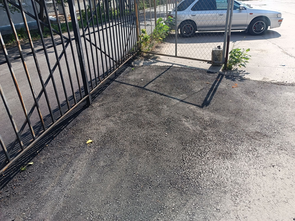 Первые участки площадью около 2 кв.метров расположены прямо у механических ворот во двор, по обе стороны от них. Третий расположился между 2-м и 3-м подъездом. Это обнаружили сотрудники «Дорожного контроля» в ходе очередного рейда по отремонтированным дворам.