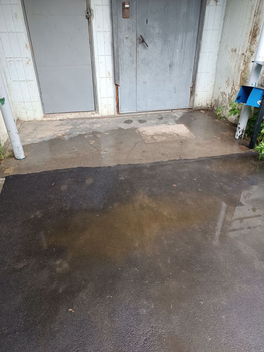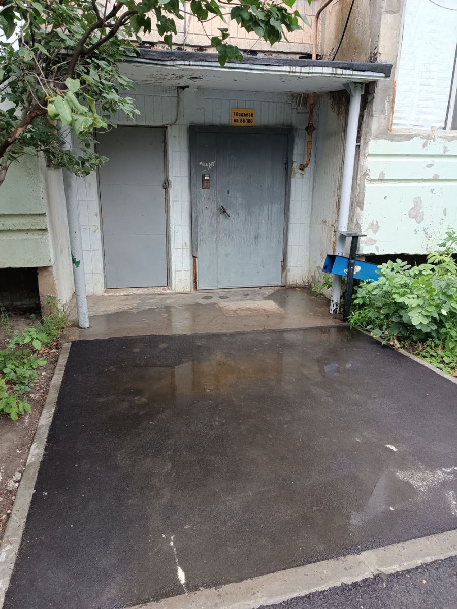 На территории отремонтированного двора на Майской,18 в поселке Жасминном Гагаринского района Саратова образуется лужа перед входом в 7-й подъезд. Вода буквально перекрывает вход в дом даже при незначительном выпадении осадков.