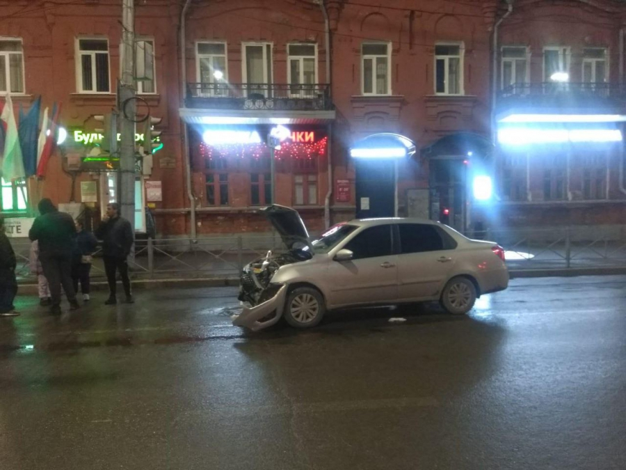 Вчера ночью, 6 ноября, в центре Саратова столкнулись два автомобиля, один из которых потом угодил в столб со светофором. Об этом сообщили в региональной Госавтоинспекции.