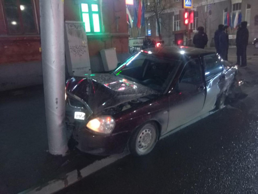 На фотографиях с места происшествия видно, что после столкновения «Приора» влетела в опору светофора.