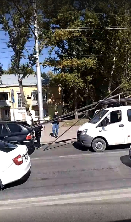 Сегодня, 1 сентября, в Ленинском районе Саратова в окно иномарки влетел металлический прут, который вывалился из грузового авто. Кадры с места события опубликовал очевидец в группе «Саратов онлайн» в социальной сети «ВКонтакте».