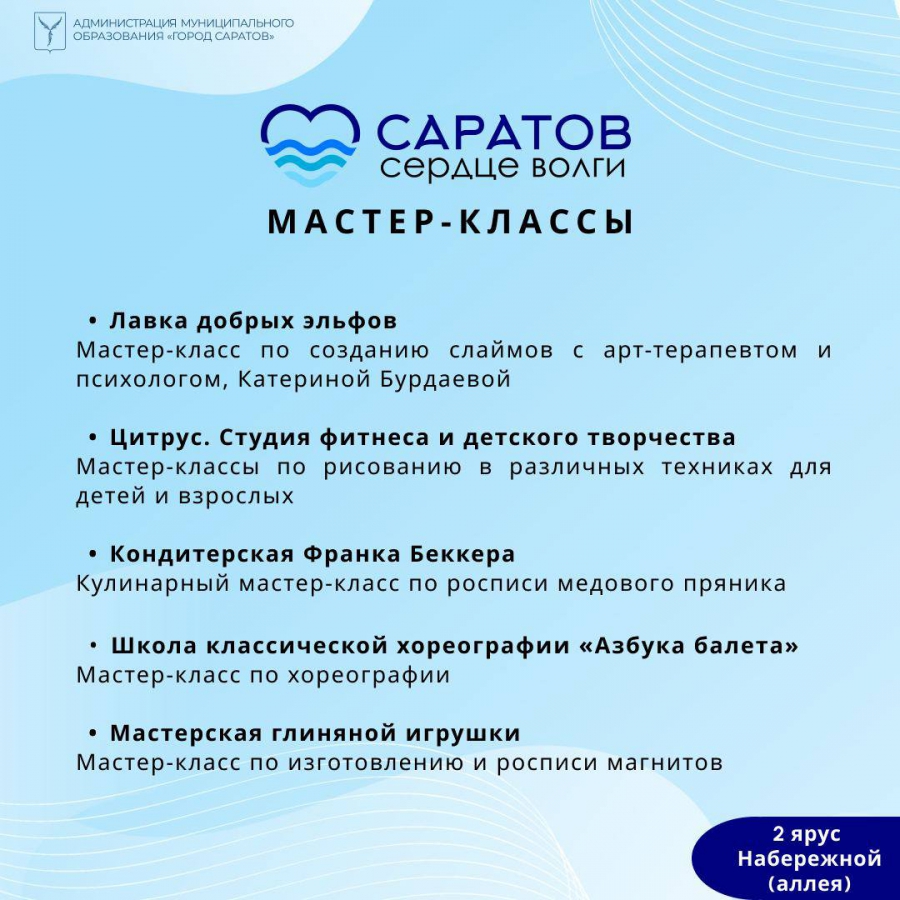 – интересные мастер-классы для всех возрастов;