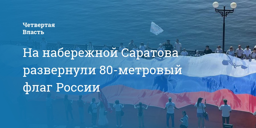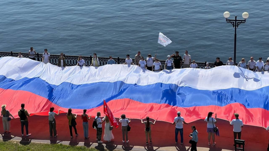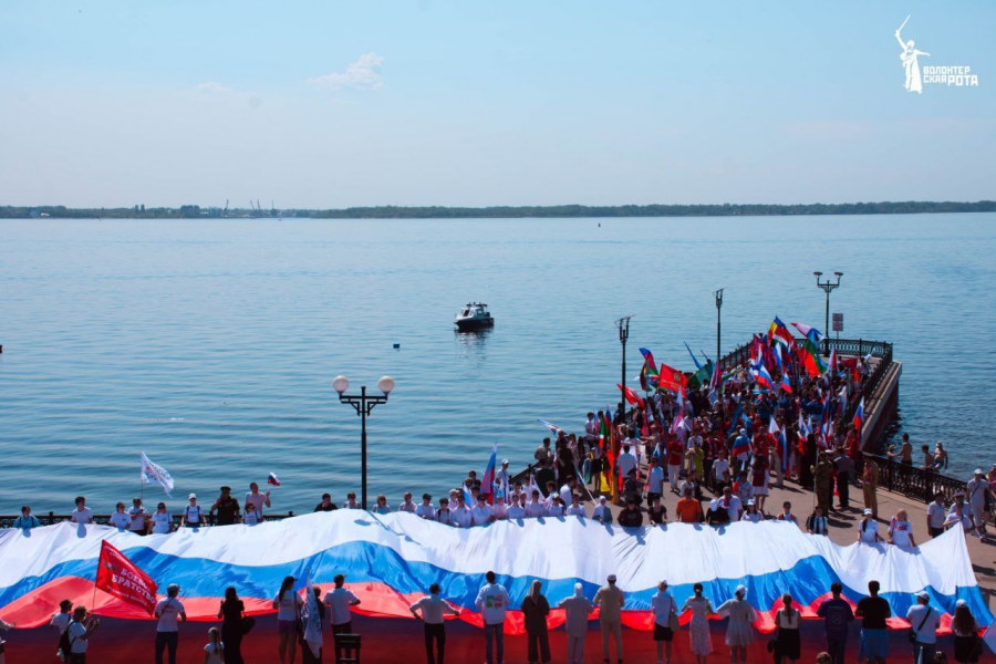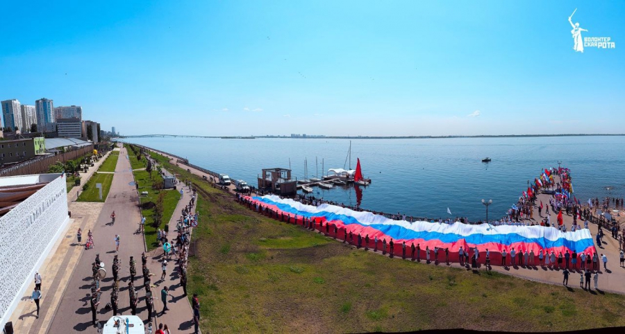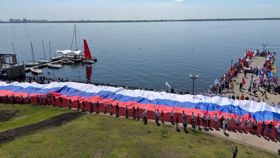 На набережной Саратова развернули 80-метровый флаг России