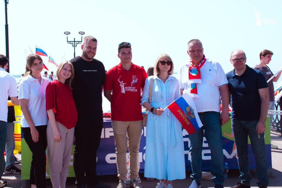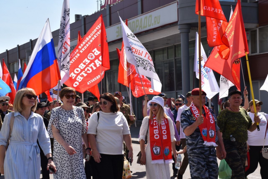 На площади Петра Первого представители ветеранских, военно-патриотических, национально-культурных, молодежных организаций, движения «Жены Героев», участники специальной военной операции, студенты и просто жители города возложили цветы к памятнику российскому императору. Затем со Знаменем Победы, флагами Российской Федерации, Саратовской области и всех российских регионов прошлись дружной колонной до Летнего кинотеатра на Новой набережной. Там под гимн России развернули 80-метровый триколор.