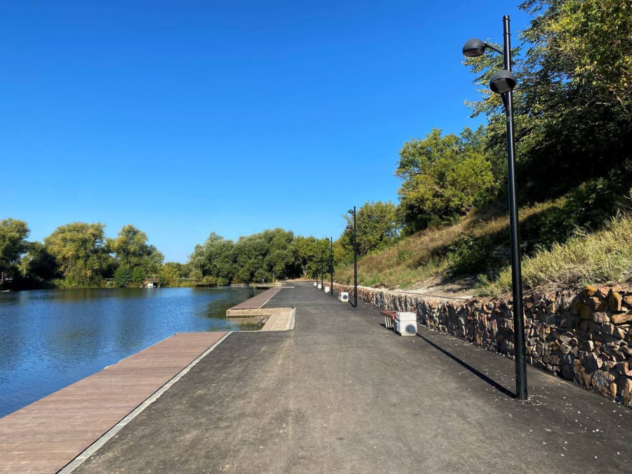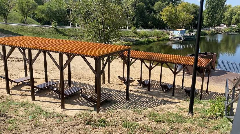 В этот раз на набережной появились лавочки и урны. Проведены работы по укладыванию нового асфальтобетонного покрытия, а вдоль берега положили деревянный настил. Теперь на отдельном помосте находятся раздевалки, душ и фонтанчик с питьевой водой. В зоне солярия поставили навес с пляжными лежаками.