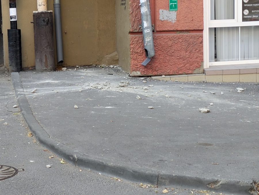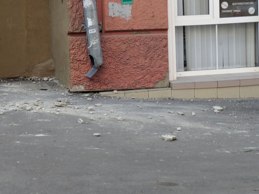Опасная для пешеходов ситуация наблюдается на улице Некрасова (между Московской и Первомайской). Один из обломков рухнул между домами №43А и №49. Первый построен относительно недавно (2008 год), второй уже считается памятником – Дом Рязано-Уральской ж/д (1956 год). Откуда именно падают камни, пока уточняется.