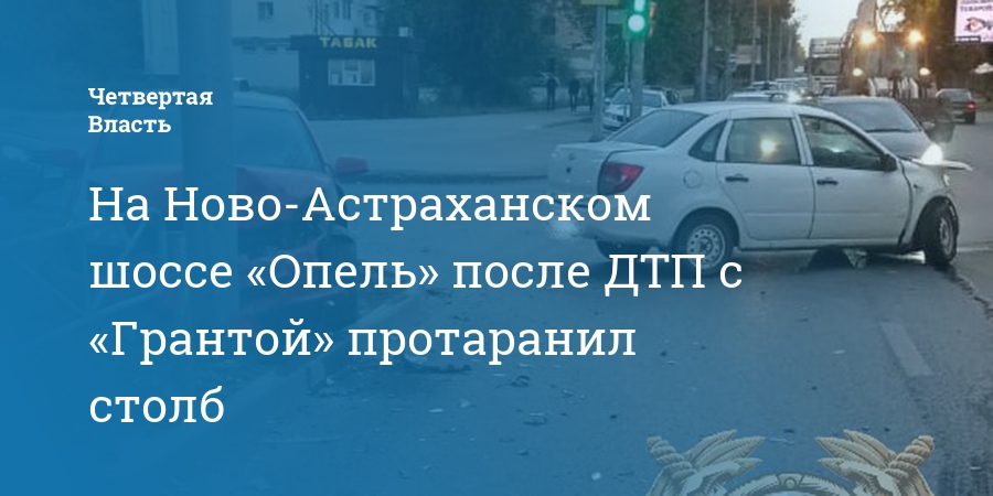 На Ново-Астраханском шоссе «Опель» после ДТП с «Грантой» протаранил столб
