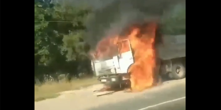 Вчера, 25 августа, в Заводском районе Саратова сгорел грузовой автомобиль «КамАЗ». Очевидец опубликовал в соцсетях видеоролик с места происшествия.