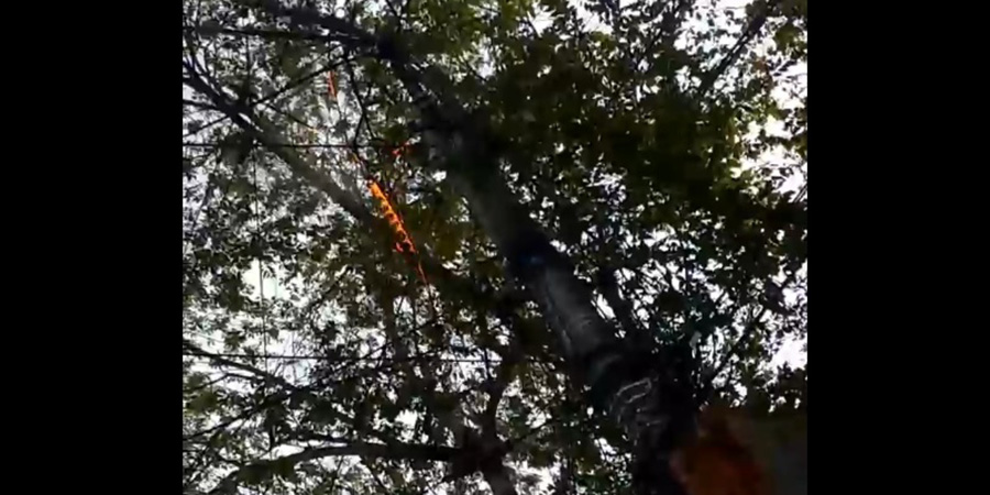 Кроме того, очевидцы отмечают, провод горел непосредственно рядом с деревом.