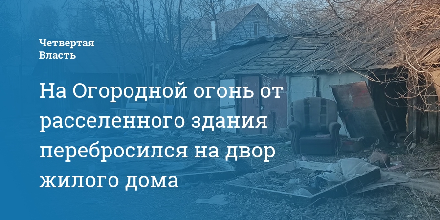На Огородной огонь от расселенного здания перебросился на двор жилого дома