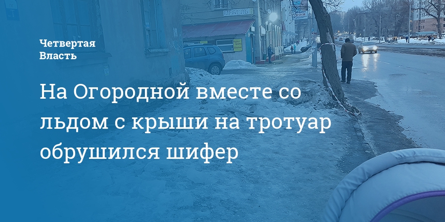 На Огородной вместе со льдом с крыши на тротуар обрушился шифер