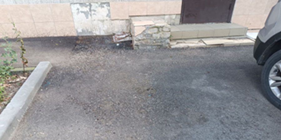 При проверке участка плотномером коэффициент уплотнения показал значение 0,83 и 0,89, что не соответствует нормативным требованиям. Помимо этого, у 4 подъезда наблюдается еще один небольшой участок выкрашивания. В целом же дворовый проезд заасфальтирован качественно.