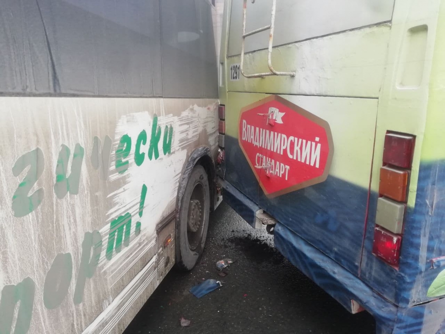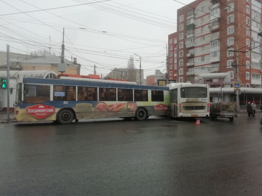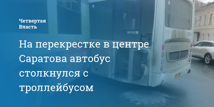 На перекрестке в центре Саратова автобус столкнулся с троллейбусом