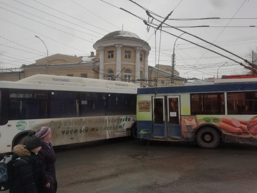 Несколько минут назад в Саратове на пересечении улиц Московской и Чернышевского столкнулись троллейбус и автобус.