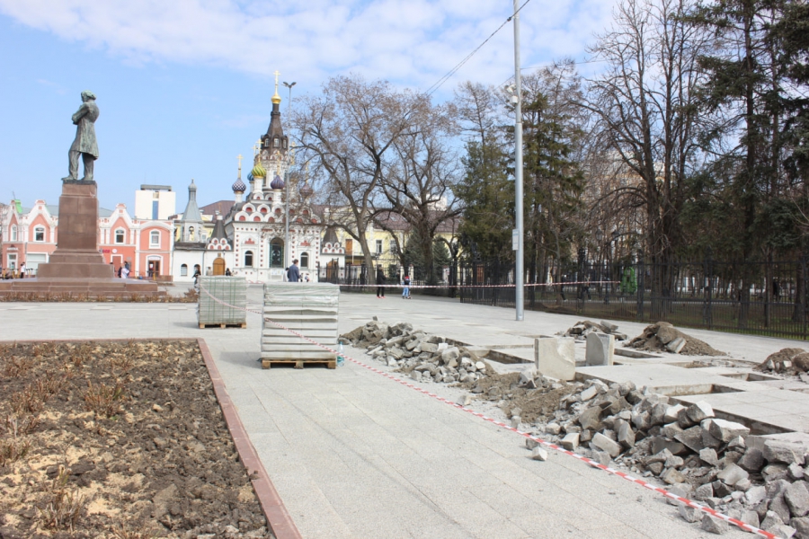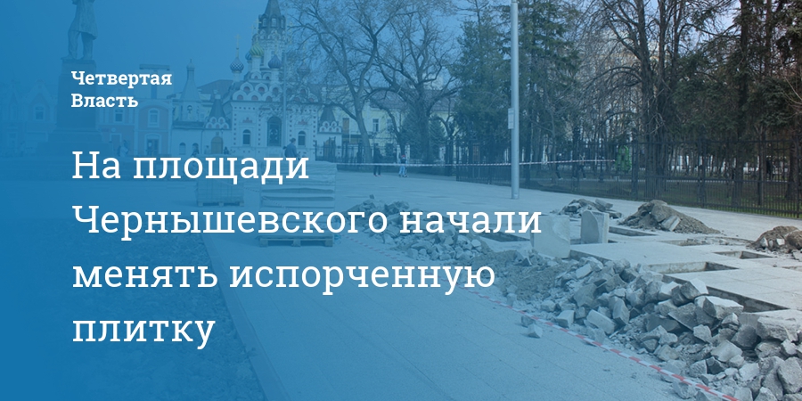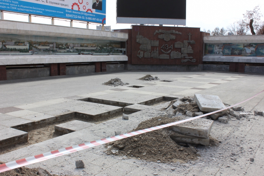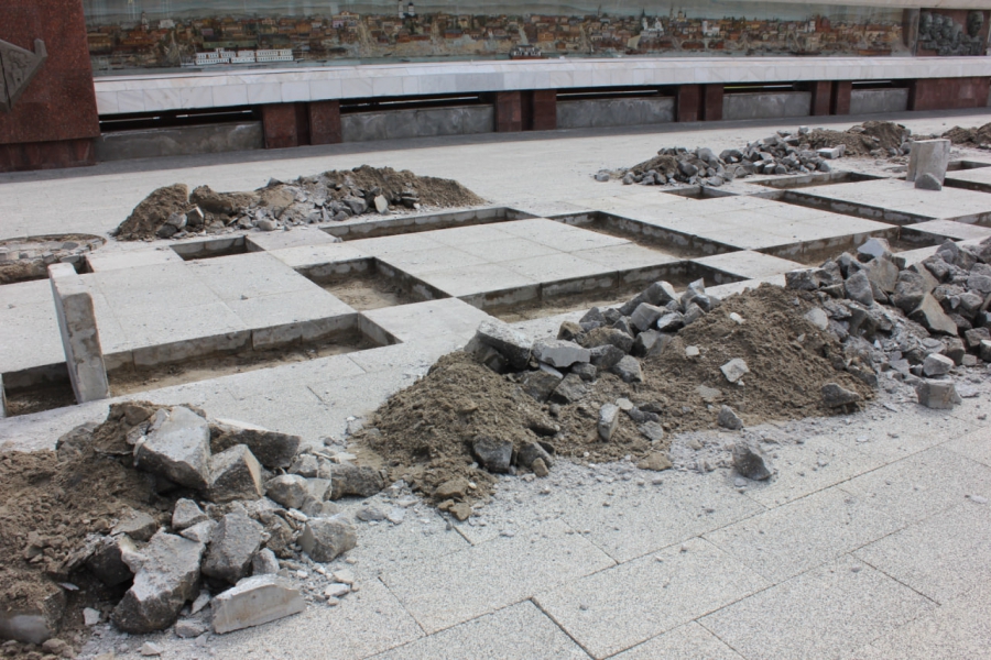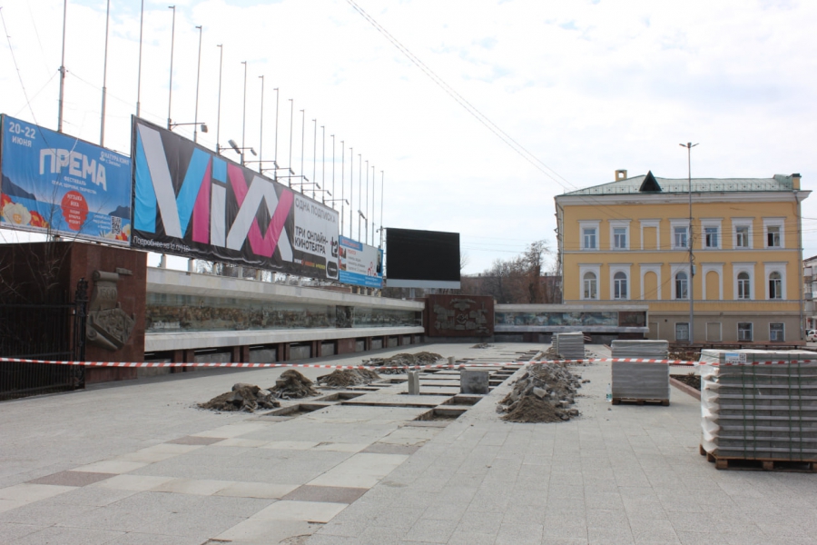 На площади Чернышевского начали менять испорченную плитку