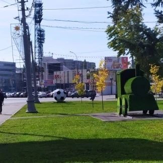 Специалисты установили здесь малую архитектурную форму в виде футбольного мяча, диаметр фигуры составляет 1,7 метров. Как пояснили в «Дорстрое», арт-объект «перекликается» с расположенными неподалеку крупнейшим спортивным стадионом города «Локомотив», построенным в 1962 году, и домашней ареной футбольного клуба Сокол.