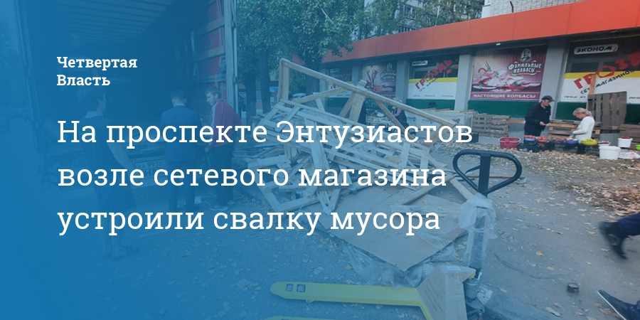 На проспекте Энтузиастов возле сетевого магазина устроили свалку мусора
