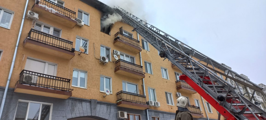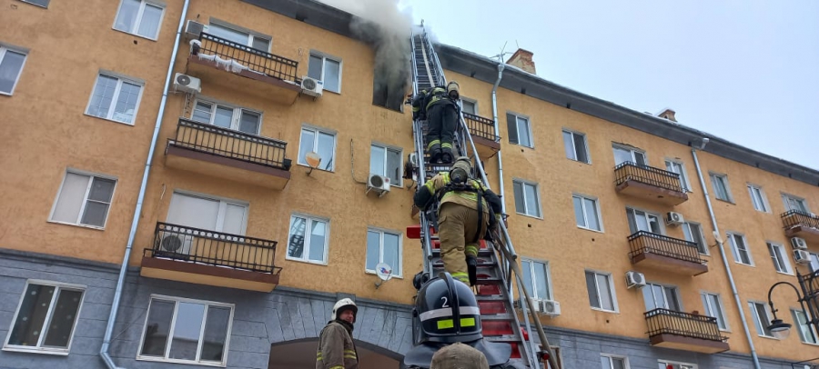 На проспекте Кирова загорелась квартира. Прибыло 5 пожарных расчетов