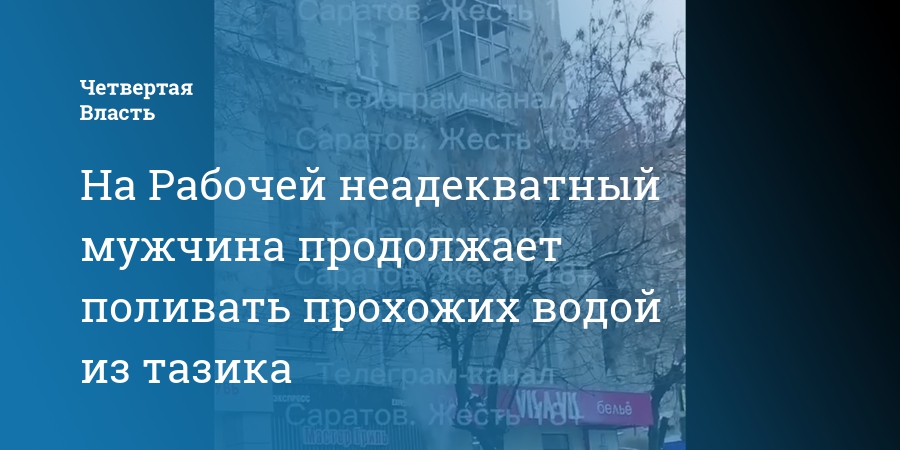 В центре Саратова неадекватный мужчина на 5-м этаже продолжает обливать прохожих водой из тазика. На это местные жители пожаловались в телеграм-канале «Саратов. Жесть».