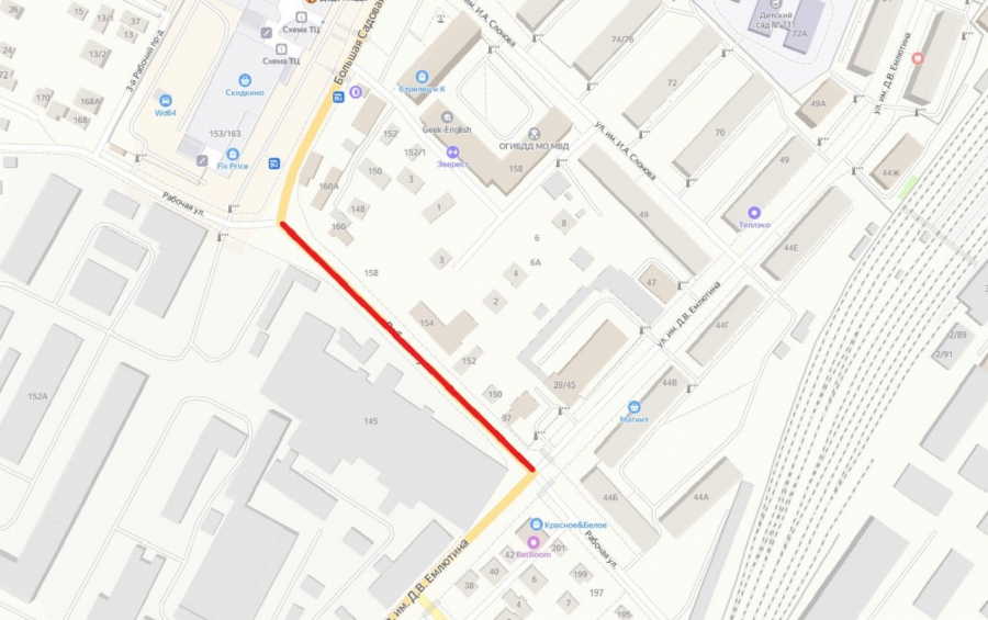 Для проведения ремонтных работ на теплосетях перекрыто движение транспорта по улице Рабочая между Емлютина и Большой Садовой.