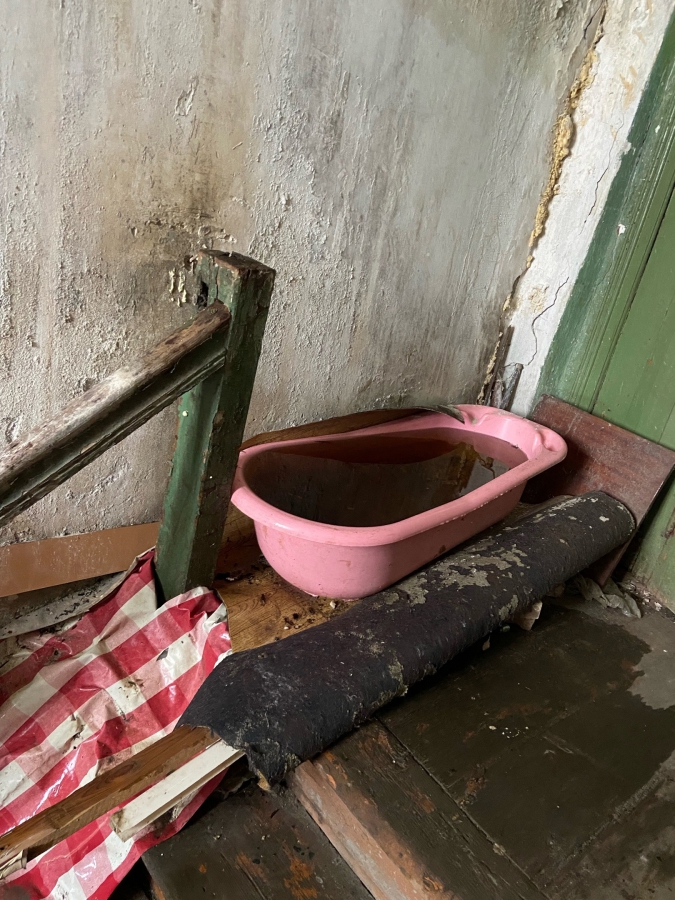 «После суточного дождя в доме находиться невозможно. В ход идет все: ведра, монтажная пена, ванночки. Из квартир можно смотреть на небо. Технику включить невозможно, все соседи боятся замыкания, дом старый - загорится как спичка!» - написала горожанка.