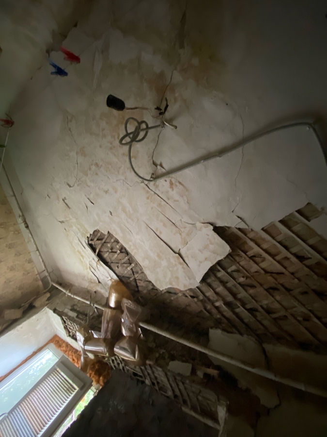 Якобы после этих работ образовались сквозные дыры в кровле, и теперь во время дождя помещения дома заливает. Жильцы опасаются короткого замыкания техники при попадании на нее влаги и используют всевозможные подручные средства, чтобы собрать воду.